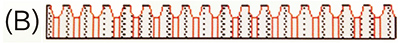 B圖:經(jīng)防滑處理的地材表面放大數(shù)倍后,毛細(xì)通道寬,毛細(xì)孔上層形成坑凹,使摩擦系數(shù)大大增加,遇水產(chǎn)生真空吸盤(pán)作用。