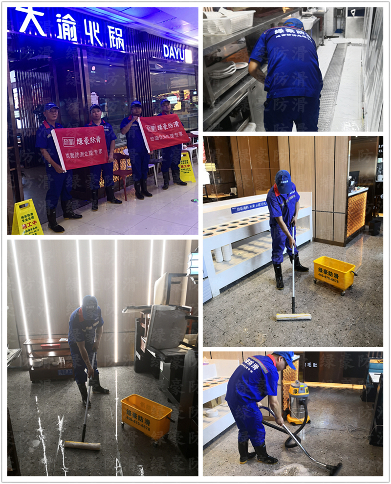 大渝火鍋餐飲飯店地面防滑處理案例,綠豪地面防滑是地面防滑處理專業(yè)品牌(4006706678),主要針對(duì)瓷磚防滑處理、地面防滑處理、飯店防滑處理、學(xué)校防滑處理、醫(yī)院防滑處理,具有中國(guó)環(huán)境治理甲級(jí)資質(zhì),中國(guó)防滑行業(yè)最具影響力品牌,集科研、生產(chǎn)、銷售、服務(wù)于一體,依托浙江大學(xué)科技園技術(shù)支持,致力于人居環(huán)境安全服務(wù),專業(yè)地面防滑處理,杭州電視臺(tái)有專題報(bào)道,《錢江晚報(bào)》有新聞報(bào)道,浙江政府采購(gòu)云平臺(tái)供應(yīng)商,阿里巴巴地面防滑服務(wù)商。