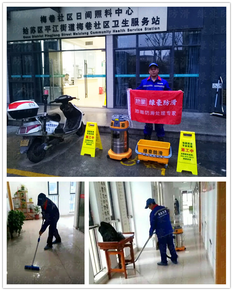 社區(qū)衛(wèi)生服務站地面防滑處理案例,綠豪地面防滑是地面防滑處理專業(yè)品牌(4006706678),主要針對瓷磚防滑處理、地面防滑處理、飯店防滑處理、學校防滑處理、醫(yī)院防滑處理,具有中國環(huán)境治理甲級資質,中國防滑行業(yè)最具影響力品牌,集科研、生產、銷售、服務于一體,依托浙江大學科技園技術支持,致力于人居環(huán)境安全服務,專業(yè)地面防滑處理,杭州電視臺有專題報道,《錢江晚報》有新聞報道,浙江政府采購云平臺供應商,阿里巴巴地面防滑服務商。